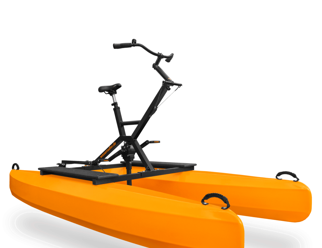 Wir haben das Fahrrad nicht neu erfunden, nur leicht verändert. Mit dem Wasserfahrrad kannst Du die Zeit auf dem Wasser auf eine etwas andere Art und Weise verbringen. Die Fortbewegung erfolgt durch Beinkraft, die Bedienung ist kinderleicht und die Katamaranbauweise sorgt für eine hohe Eigenstabilität.